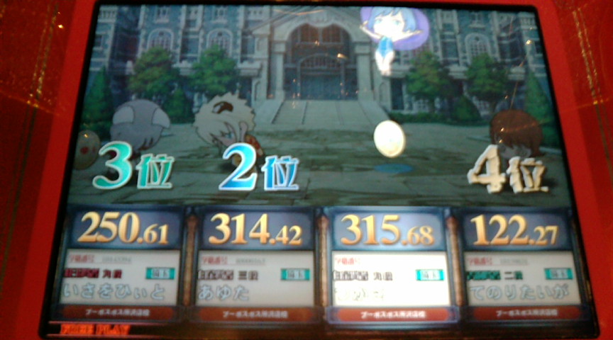 × [PR]上記の広告は3ヶ月以上新規記事投稿のないブログに表示されています。新しい記事を書く事で広告が消えます。 大会に行ってきた。 芸能◯×縛り。 回収率75%でこの点数は当然の結果であろう。 とはいえ、他の人に負けるのはどーかと。 スポーツ◯×縛り。 復習していないとはいえこっちは相当ひどい。 でも復習した所で300が限界だろう。 芸能は復習してかつDSをある程度は回してある状態でこれなので あとは他の人のブログを見て勉強するか 直接QMA7を回して回収するしか今より強くなる方法が思いつかない。 というわけで残り2週間は残るスポーツ、ライスタ、文系を一通り復習したあとは ゲーセンに行ってひたすら回収する必要があるわけだが さて、どれくらい回すか目標を決めることにしよう。 というわけで10000円分回すことにした。 100円で3クレなので10000円で300クレですな。 1日60クレで5日間、1日75クレで4日間ゲーセンに通うことになるのかー。 75クレも電池持つかなー。 とまあ残り2週間の目標を決めたわけだが 11月の火曜日以降にたくさん回したいので 残りの10月はリアルをかなりがんばって 11月一週目のリアルは手を抜けるように調整しないと。 自分でスケジュール立ててみたがこれ相当キツイぞ。 11月7日は決勝までいければいいやとか思い始めている。 だがせめて一回戦敗退だけは避けたい。 PR この記事にコメントする
