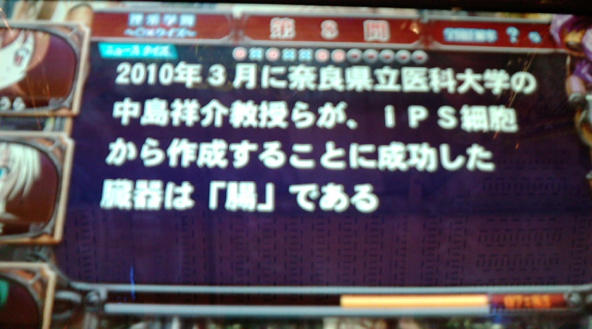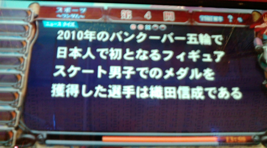 10クレで◯×のニュースクイズは2つだけ。 ↑の答:× ↑の答:◯ トナメやっていて正解率-%は5問に一回くらいの割合で見かけた。 -%が新問なのかリセット問なのか自分には判別がつかないが もし全部新問だとしたら相当な新問が追加されていることになる。 予習も含めて10クレ中30問くらいは見かけたぞ。 新問効果もあって余計に間違えまくった。 で、またやらかしたので晒しとしてあえて上げる。 これはひどい。ひどすぎる。 ちなみにまたスポタイ。 今日だけで総合正解率が5%下がった。 今日からしばらくは正解率が大きく下がるはず。 60%は切らないようにがんばりたいのだが。 55%はさすがに切りたくない。 55%未満だと制限大会の下限に引っかかる可能性あるからな。 Ⅵの賢猫杯ぷち、最初は55%以上65%以下というルールだったし。 グラフはというと理系も一緒に下がっているのであまり大きな変化はない。 グラフ見たらアニゲ投げてくれそうなグラフにはなっている。 逆に理系は全くといっていいほど投げてくれそうにないグラフにもなっているが。 まだ◯×の☆が埋まりきっていないのでもうしばらくはトナメやり続けるな。 決勝で◯×投げて1問目で誰かが単独不正解すると 2問目以降単独不正解した人がダイブし始めるのが見ていて楽しい。 おかげで4位回避にはなっている。 だが、相変わらずプラチナはゲットできないままだ。 いつプラチナ取れるんだろうな。 PR この記事にコメントする