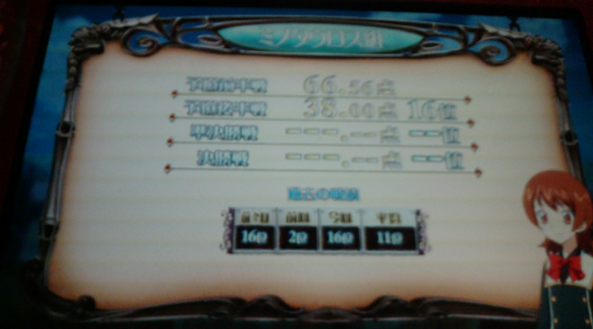 とりあえずミノフェニプレイヤー(笑)の正解率でも。 総合61.70 ノンジャンル58.63 アニゲ68.37 スポーツ51.49 芸能52.18 ライフスタイル58.42 社会61.61 文系61.29 理系77.05 スポーツが上がったというより芸能が下がった感じ。 今日のプレイでめちゃめちゃ芸能が下がったはず。 おそらく青銅になるときにはスポーツと芸能が逆転すると思う。 で、今日のプレイはいうと最悪。 まず今日は7の日なので地元に行ったら6台中5台が連コされていた。 ガーミノが多いうちの地元だけどこれはひどいというレベルではない。 特にドラで2位になった勢いでコイン入れたやつにはあきれた。 ひとりだけ席を譲ってくれる人がいただけましだろうが そういう台に限って反応が悪かったりする。 で、今日のミノ、予選と準決勝で全部芸能が出てきやがったし。 結果がこれ。 芸能やめてーー。 ガーでもミノでも芸能だけは周りはやけにできるから 芸能がガーレベル以下の自分には辛い。 で、ガーはまず賢者がほとんどいない。 さらにいうと虹クマ7つなんて自分しかいなかったし。 魔道士あたりで虹クマ6つは意外といた。 もう全く掲示板にこの話が出ていないが 階級が高い人がいると問題がムズくなるという説があった。 信じているのは俺だけだろうし 実際はたまたま自分がわからん正解率40%くらいの問題がたくさんきただけだろう。 まあこの回は魔道士以上は自分しかいなかったが死にかけた。 あぶねえ、この時はガー予選落ちを覚悟した。 ちなみに8~10位は全部com。 そしてスポーツでも芸能でもなかったこと。 もう基礎力がないね。特にマルチ。 やること多すぎて泣けてくる。 そりゃぷちで勝てないわな。 本当は24時くらいまでやるつもりだったのに結果がさんざんだったので 3クレでミノに上がった瞬間に切り上げた。 こういう日は長時間プレイはしないに限る。 PR この記事にコメントする