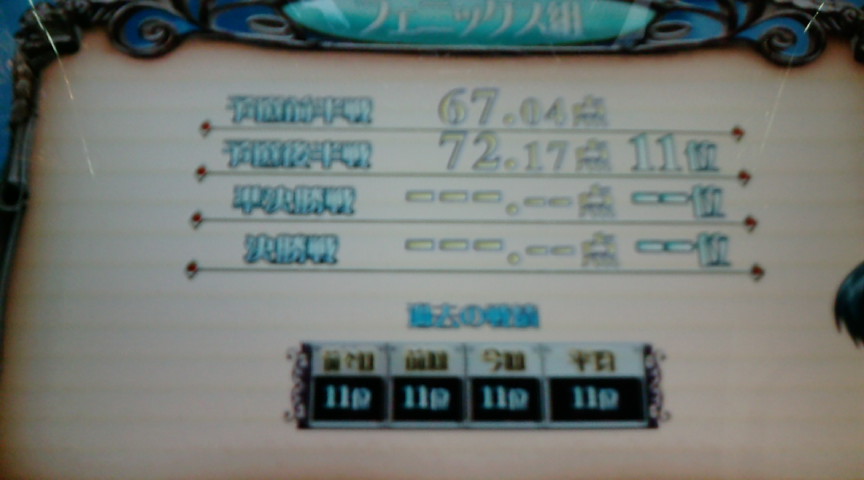 正解率17% ライフスタイルは簡単な問題とグロイ問題の2極化している気が。 そしてグロ問はセレクト系に多い気がする。 ◯×ニュースクイズ ↑の答え:× ↑の答え:× ↑の答え:◯ 今日はけっこう回したんだけどなー。 対となる問題にも遭遇できなかったし。 予習で新問でてくる確率本当に低くなっている気がするぞ。 これはひどい、というよりムゴイ。 QMAプレイヤーが一番取りたくない順位だと思う。 今日は376枚未処理の写真が増えました。 処理する気が起きねえ。 DDR X2も少しプレイ。 EXTRA STAGEの青っぽい表紙の曲のadvanceで死亡。 遅くなった瞬間タイミングが全くわからなくなった。 それと888もプレイしてみた。 疲れる。死にかけた。よくexpert生き残った。 challengeは見せてもらった。 さすがにこれはクリアできん。 つーかまずこれをクリアできるというのが凄いと思うよ。 タイミングがさっぱりわからん。 PR この記事にコメントする