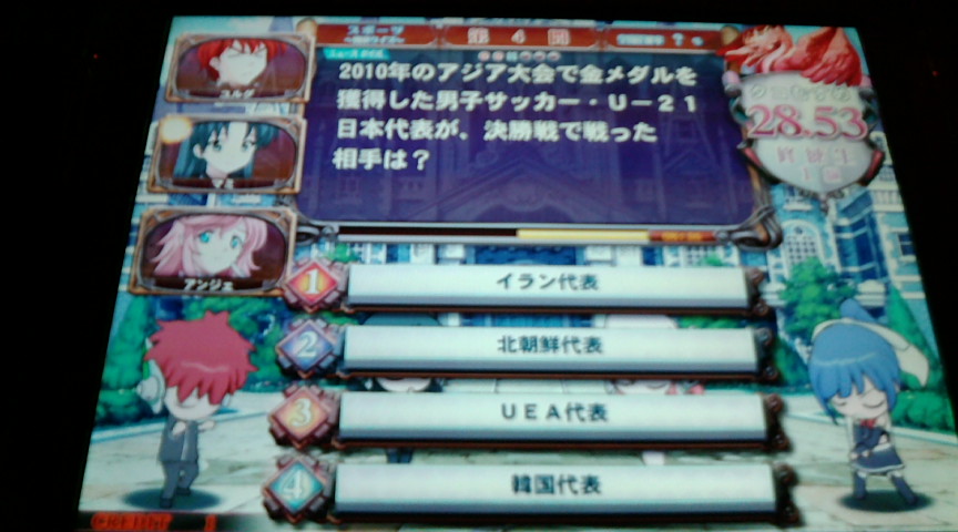 正解率25% 有効期限はないらしいです。 自分基本的に旅行とかしないからさっぱり。 ニュースクイズ 24クレやってきました。 今日は連想中心に回していたので拾えたのが2問だけだったのですが どっちも全滅で答えが絞れず答え調べました。 でも今日は調べた価値はあったかも。 ↑の答え:2 ↑の答え:たぶん3 で、2つめのU-21の問題。 調べたら記事ではUEAではなくUAEと書いてある。 なのでこの問題は答えの文字を打ち間違えたかと思われます。 まあそのうち直されるでしょう。 今日思わず笑った問題。 たぶんライフスタイル問。 3つめのヒントでティンときた人は間違いなくKEYファン。 まさかQMAで鍵っ子を見るとは思いもしなかった。 一応調べてみたところ 鍵っ子とは 「両親が共働きで留守のため、常に鍵を持たされている子供。 昭和38年(1963)〜40年の流行語。」 だそうです。 知らなかった。 ゲーム会社のファンであるという意味で最近できたものだと思っていた。 ちなみにYAHOOで調べると・・・・・ 最初に出たのはKEYのファンサイトでした。 そういえば新しくクドわふたーでていたな。 暇ならやりたいんだが絶対やる時間ないな。 そもそもまずリトルバスターズをやっていないし。 リトルバスターズPSPで出ないかなー とか思ったら 2010年11月25日にPSPで出たらしいです。 ナニーーーー。 これはさすがに買いたいわ。 どれか飲み会ひとつサボって買いにいくかもしれん。 しかし電車の中でギャルゲーやりながらニヤニヤしている自分を想像すると キモいという感想しか出なさそうだ。 それとリトルバスターズのアニメ化はまだかなー? いや、さすがに智代アフターのアニメ化を先にしてほしい。 PR この記事にコメントする