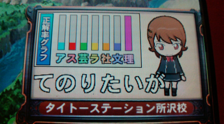 ドラの予選でアニキーで0点をかましたらこうなった。 意識して作ったつもりはなかったので驚きだ。 で、実際に見てみると確かにかっこいい。 このグラフに憧れる人がいるというのもわかる気がした。 今年はこのグラフをプロフィールに使うことにしました。 正解率は アニ:60.56% スポ:57.93% 芸能:59.79% ライ:60.19% 社会:62.09% 文系:60.47% 理系:80.62% でした。 他の人のブログもちょくちょく見ているけど 某神も全く同じ日にこのグラフが完成したのはたまたまだろう。 話は変わって。 さっき↑で言った通り0点をかましました。 今作のアニゲの正解率が悪い理由。 答:アニ特と漫画が壊滅的だったから。 ゲーム問が一問もこなかったときに痛感した。 もともとタイピング系が苦手なのでこれからも アニメですら0点を取る可能性は十分にある。 まさか理系で0点を取るってことは・・・ないと信じたい。 で、とりあえずまとめてみた。 1回目:スポキー 2回目:スポキー 3回目:アニキー あまりに0点取ることが多いので 0点をネタにするということを思いついた。 なのでこれから0点を取ったらなるべく写真を取って 0点取った回数を数えてきたいと思います。 で、同日。 4回目。 スポパネ。 これⅦ終了時までに100回いくんじゃね? 自分は100点より0点取る回数の方が圧倒的に多いので 自分らしいネタだとは思う。 最凶の☆1◯×問題。 答 ◯ 正解率 24% 芸能の予習一発目からこんなの引いた。 でも今作はブログも始めたというのもあって こういうのもネタにできるし Ⅶは相当楽しんでいる。 4月から恐ろしく忙しくなるが可能な限りⅦはプレイしていきたい。 PR この記事にコメントする