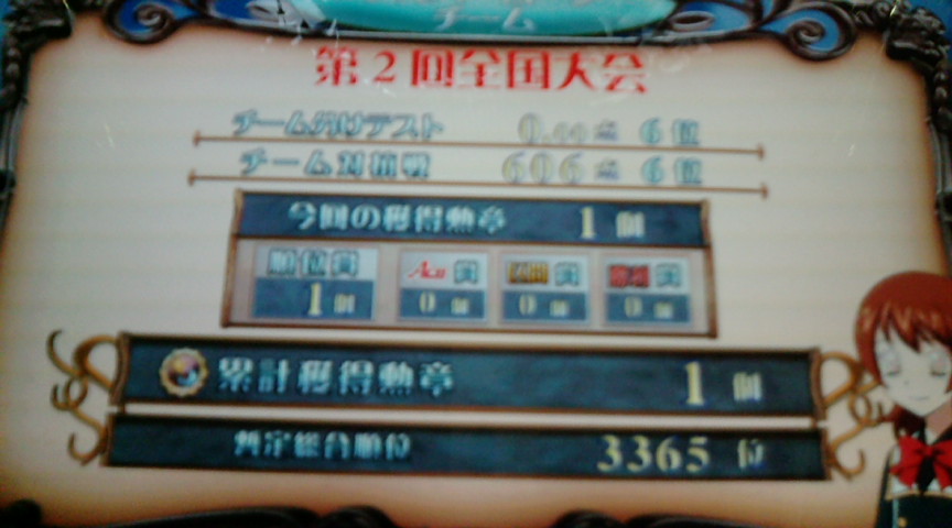 × [PR]上記の広告は3ヶ月以上新規記事投稿のないブログに表示されています。新しい記事を書く事で広告が消えます。 チーム分けテストはわざと。 本戦ではスポ芸が4セットの上に全滅による減点がいっぱいあったので 取るのは比較的楽だった。 こういうふざけた楽しみ方しないと全国大会やってられん。 底辺の勲章数取ったのでこれで全国大会参加人数わかりますな。 たしか第一回の総参加人数はわからなかったはず。 もう片方のカードはなぜか知らんがACEだったり 自選の理系3問ミスったり全滅したりアニゲで区間賞取ったり 相変わらずよくわからん展開になった。 全国の理系って意外とムズイと思う。 メインサブ1クレずつやったところでトナメ。 ミノ1クレフェニ1クレ。 ミノはフルゲート。 グランドスラムで終わった。 やっぱ多少は全国大会効果で全体のレベルは下がっているのかな? フェニ。 マジで人がいねーーーー。 とは言っても準決勝落ち。たしか5人以上はいたはず。 大会中は相変わらずフェニに人がいなくなる。 一気にトナメやる気が失せたので今日はこれにて終了。 ニコニコで見ているだけだと全国面白かったから もしかしたら楽しめるかもと思ったがそんなことはやはりなかった。 QMAはヒロイン検定が来るまでお預けだな。あと数日。 あとモチベーションが全然上がらないので 今月のブーボスは行かない方針で。 鍛えたジャンルとか形式がないため行ってもしょうがない。 PR この記事にコメントする