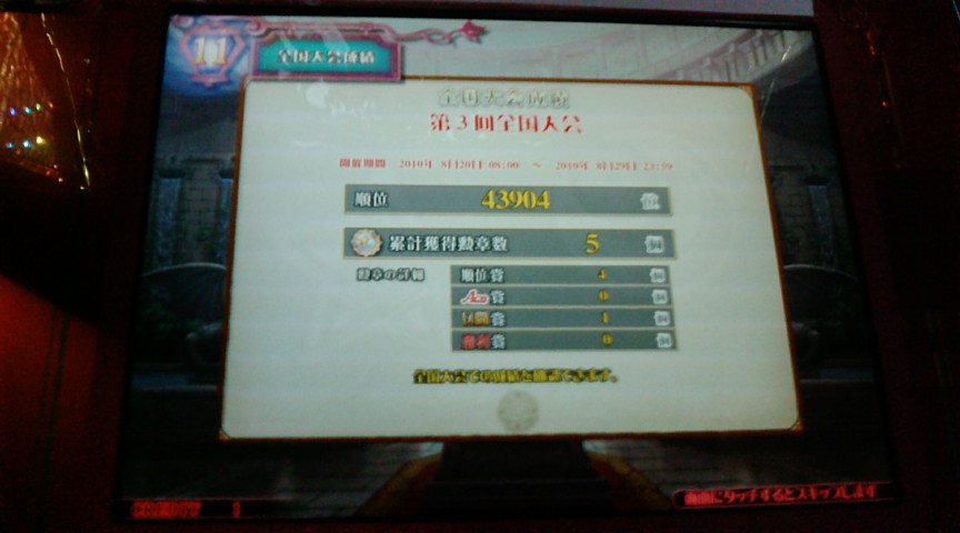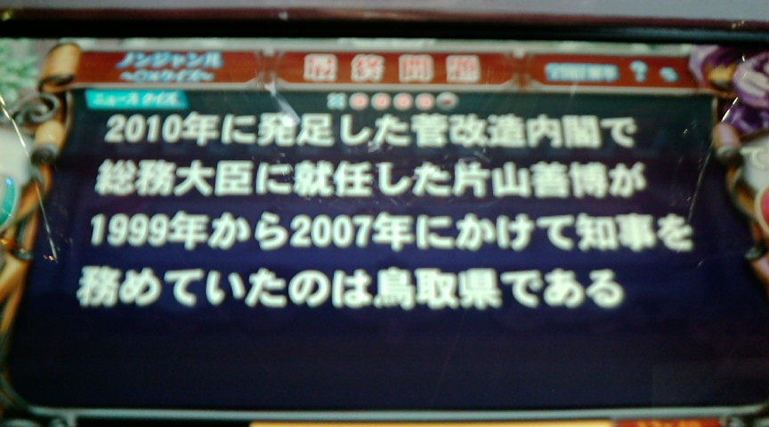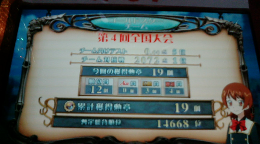 正解率30% ダミーは「九十九部」 文系は何気に難しいのが多い。 ニュースクイズ ↑の答え:◯ ↑の答え:× 今日はこんだけ。 つーか俺引きが悪いと思う。 先週引けなかったニュース問題今日バンバン引けたし。 配信初日は新問の出題確率減らしているんじゃないのか?と思う時がある。 新検定はそれぞれ1クレやって終了。 今日の成績 ミノ:優-優(2クレ) フェニ:2-2-3(3クレ) 下ドラ:2-3-3(3クレ) 上ドラ:10-11-6-優(アイス)-8-11 6-6-12-8-7-6-9-15-10(15クレ) フェニ:2(1クレ) 計24クレ トナメ人いねー。 上ドラしか人がいない。 とはいえ、予習4周できたり決勝で◯×たくさん投げられたし、まあいっか。 にしても◯×の未見がなくなる気配が全くといっていいほどない。 これ本当に11月に間に合うのか? 安定して350点も取れそうな気がしない。 とりあえず芸能の処理問題が2100問になりました。 全国大会 まずサブカをここ一ヶ月全く動かしていなかった件について。 今更こんな画面が出てきました。 サブ1クレ目はACE決めで全答して1位。 そのあとは普通の成績で3位で終了。 で、その後メイン。 本戦はめっちゃ成績よかった。 今後おそらく取れないであろう総合優勝。 区間賞もアニメ・文系・理系で1つずつ。 文系は上杉謙信の母親の◯×が単独正解でゲット。 で、これ最終順位だけみるとけっこういい成績なんだけどね。 チーム分けテスト0点wwww。 プラチナ難しいね。 とはいってもACE、区間3つ、総合優勝はそれぞれ取れたことがあるので 俺でもうまくやればプラチナは取れる可能性はあるということがわかった。 って言ってもプラチナ取れる確率はたぶん1/100くらいでしょうから 全国でプラチナは狙いませんが。 少しは成長したかな? PR この記事にコメントする