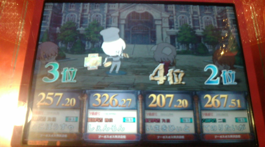 × [PR]上記の広告は3ヶ月以上新規記事投稿のないブログに表示されています。新しい記事を書く事で広告が消えます。 大会に行ってきた。 芸能◯×縛り。 回収率75%でこの点数は当然の結果であろう。 とはいえ、他の人に負けるのはどーかと。 スポーツ◯×縛り。 復習していないとはいえこっちは相当ひどい。 でも復習した所で300が限界だろう。 芸能は復習してかつDSをある程度は回してある状態でこれなので あとは他の人のブログを見て勉強するか 直接QMA7を回して回収するしか今より強くなる方法が思いつかない。 というわけで残り2週間は残るスポーツ、ライスタ、文系を一通り復習したあとは ゲーセンに行ってひたすら回収する必要があるわけだが さて、どれくらい回すか目標を決めることにしよう。 というわけで10000円分回すことにした。 100円で3クレなので10000円で300クレですな。 1日60クレで5日間、1日75クレで4日間ゲーセンに通うことになるのかー。 75クレも電池持つかなー。 とまあ残り2週間の目標を決めたわけだが 11月の火曜日以降にたくさん回したいので 残りの10月はリアルをかなりがんばって 11月一週目のリアルは手を抜けるように調整しないと。 自分でスケジュール立ててみたがこれ相当キツイぞ。 11月7日は決勝までいければいいやとか思い始めている。 だがせめて一回戦敗退だけは避けたい。 PR この記事にコメントする