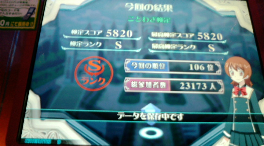 正解率は27% かまいたちの夜は舞台化されたことはあります。 トナメ ドラ:12-14↓ フェニ:3-10-4-3-4↑ ドラ:12 フェニのトナメに人がいねえ。 今の自分は土日しか基本的にプレイできないので 魔神とか全国大会が開催されている場合が多い。 今日はあえてGTにプレイしに行くけど 待ちが多かったりトナメに人少なかったら 今作のプレイはどうしようか本気で考えます。 あと自分がGTにあまりプレイしないのは順番待ちが嫌いだから。 午前は人が少なくて交代する必要があまりないので非常に快適。 DDR X3 地元ではまだ始まっていませんでした。 というよりほとんどの場所で先行稼動していないらしい。 とりあえずちょっと調べたら またレールガンの新曲が入っているとのこと。 今回のはOVAの曲らしいので自分は全く知らず。 アニメ というわけで とある科学の超電磁砲のOVAを観た。 内容は・・・普通だね。 曲のOPは・・・うーーん、ってのが正直な感想。 only my railgunが神曲すぎたんだなーと改めて思う。 コミケ 年末にやるらしい。 んで今の所スケジュール通りならば休みなので 今回は行ってみたいなーって思っています。 予定通りに休みになってくれればいいんですけど。 今回のことわざ検定で とりあえず全形式を作ってみたわけだが どういうのが一番見やすいのかなー、とか思ったり。 ブログは無料であるのに対して コミケは有料であるので 少なくとも自分の問題集よりは優れた何かがありますよねー って思いながら楽しみにしています。 覚えやすい語呂合わせのコメとか 覚えやすさの工夫があるのが一番理想的なんですが。 物量でも十分買う気にはなるけど 自分がすでに物量をやってしまっているので どうしても他の工夫点に目がいってしまう。 今回コミケに行けたら工夫点を中心に 色々見ていきたいなーと思います。 今回行けたらセレクト以外の問題集は全部買う予定、なんだが ひどいと感じたら買わないかも。 とりあえず表紙で判断するのだけは今回はしない。 現実 今月の半分は終電。しかも祝日の休みはなし。 仕事きつい。 そのうえ検定なんてものに手を出したので 休日の半分が睡眠に取られるという結末に。 QMAは回収と暗記に時間がすさまじくかかるゲームなので 今年はもう仕事に専念しようかなー、と思います。 息抜きとして軽くやるくらいの気持ちで。 仕事一筋で他のことには目もくれない、というのは 案外幸せな人生なのかもしれないと思い始めました。