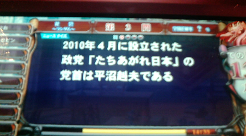 約2000→約2500 理系がやや多め。 それでもまだ半分くらいしか処理は終わっていないので 理系もまだまだ増えます。 ニュースクイズもけっこう増えてきた。 ただライフと文系全くニュース見かけないけど ちゃんとあるのかな? 今週QMAプレイしたのは二日だけ。 もうライトプレイヤーだな。 今後もこれくらいのペースになりそうだ。 4月中に賢者にはほぼなれないと思う。 で、次の火曜日は朝から夜まで全く時間がないので ニュースクイズどうしましょう状態。 ただ、幸か不幸か水曜日に何もないので 体力があれば深夜プレイをしようかと思っている。 正解率の更新って29時なのかな? 6の検定試験は24時に解禁されていたらしいので 24時に更新なのか29時に更新なのかわからない。 調べに行く価値はありそうだ。 久々にアニメ見た。 知り合いにこれおすすめとか言われたので見た。 バカとテストと召喚獣を。 最近ファミ通でも見たし 数カ月前から見ようと思って結局見ていなかったアニメ。 ファミ通のとある場所がやたら気になったので印象に残っている。 続きに写真貼り付けました。 ただ、女性の水着姿や野郎のパンツ姿があるので 見たい人は自己責任でお願いします。 見るなら2話まで見ろ、と言われたので2話見た。 確かに2話見ないとこれはまずい内容だった。 で、感想。 1話、はっきり言ってつまらない。 掲示板とかに釣られて放送日に見ていたら 間違いなく続きは見なかったな。 で、2話。 おもしれー。 一番面白かったのはマラリヤさんみたいな人だった。 たぶん今後もメインだと思うので期待できる。 あとうわさの秀吉は男の娘でOK? どうやらバカテス終わったらしい?ので 一気に見てしまおうと思う。 2週間くらい前の記事だけど 色々と問題のありそうな写真を続きに載っけます。 女性の水着とか野郎のパンツ姿があるので 自己責任でお願いします。 思いっきりぶれたけど。 文系マルチ(フェニ)。 フェニだとマルチで0点取りやすいね。 それと文系のマルチって全体的にムズイ。 文系多答とか最強なんじゃね? 今日ドラに行ってきました。 問題が恐ろしく難しくなっている。 弱ドラではほぼフルゲートの時でも50点で通過できたし。 とはいえ3位で魔法石80個はおいしいです。 ただ強ドラは本当にハンパない。 正解率25%くらいでほぼ全員正解とかないだろ。 おもいっきりヘコんだ。 この魔境では常識ってなんだ?と思わせるくらい何かがおかしい。 今回も5クレイプくらいました。 ジャイコ(ジャージ姿+アイコ)にするため購買部に行った。 ジャージはあるんだが赤がない。 赤ジャージはどこだーーー!! ページをめくっても赤だけ売っていない。 もしかして宝石グッズみたいに 予習の星埋めが関係しているのか?とか思ったりする。 で、マイルーム見たら・・・・すでに持っていた。 購買部では売り切れの所にありましたとさ。 よく見ろよ、自分。 結論 ジャージはⅥの時、赤だけ買っていた。 ついでに購買部のアイテム全部買おうと思っていたけど マジカが足りなくて半分も買えなかった。 今作も全部アイテム買える気がしない。 今日はフェニドラによくいたんで正解率がガクンと下がった。 65%切りました。 しっかし上の組にがんばって粘るほど 正解率が下がっていくというのもな。 下のクラスに居続けるとどんどん正解率が上がるし。 今のところは全く調整する必要がなさそうだけど 意図的にやろうとしたら 正解率制限大会の調整ってかなり難しそうな気もした。
